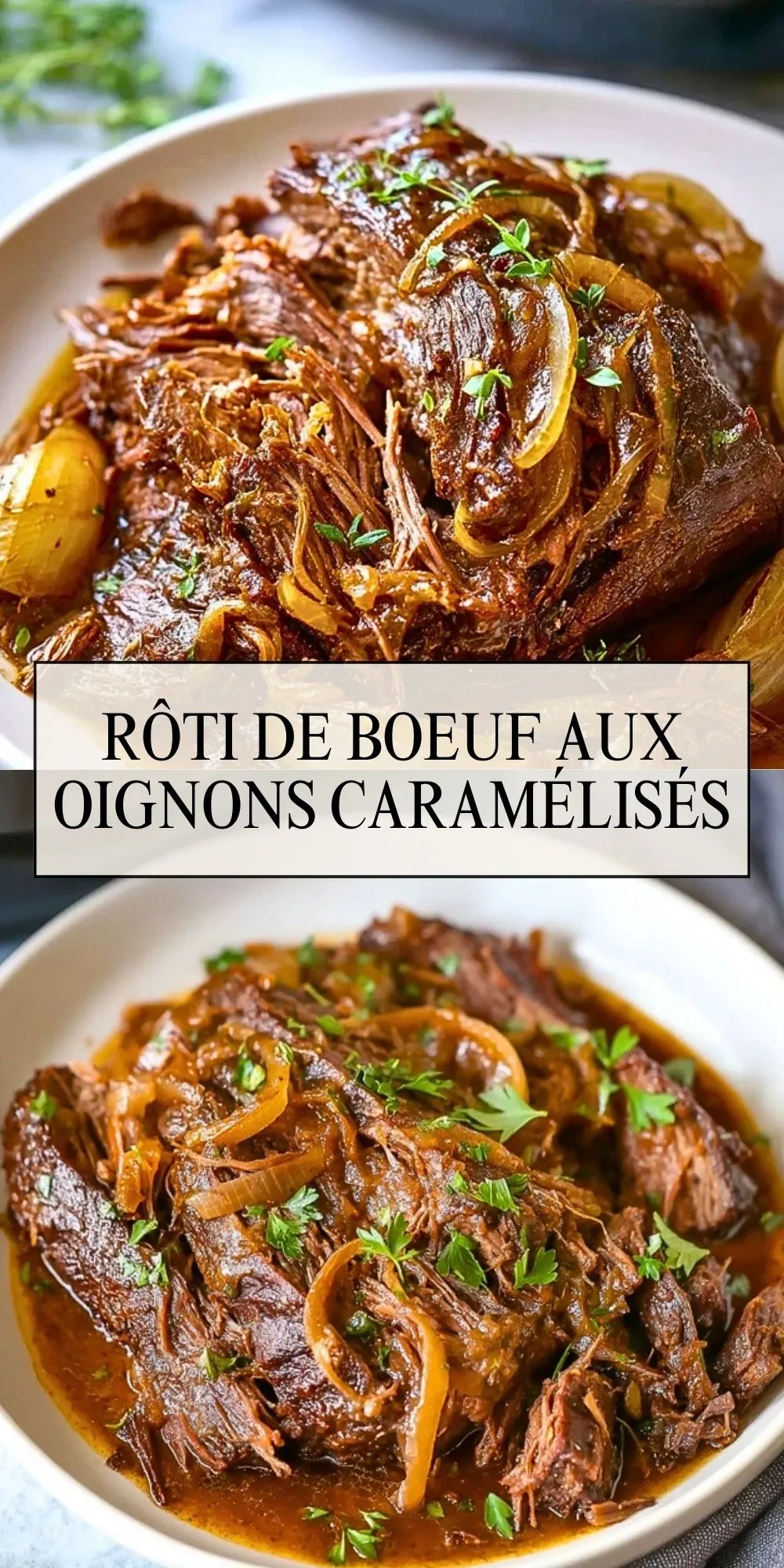 Épinglez ce rôti de bœuf aux oignons caramélisés sur votre tableau Pinterest dédié aux plats mijotés, repas du dimanche ou recettes familiales pour le retrouver facilement quand vous aurez envie d’un plat chaleureux.