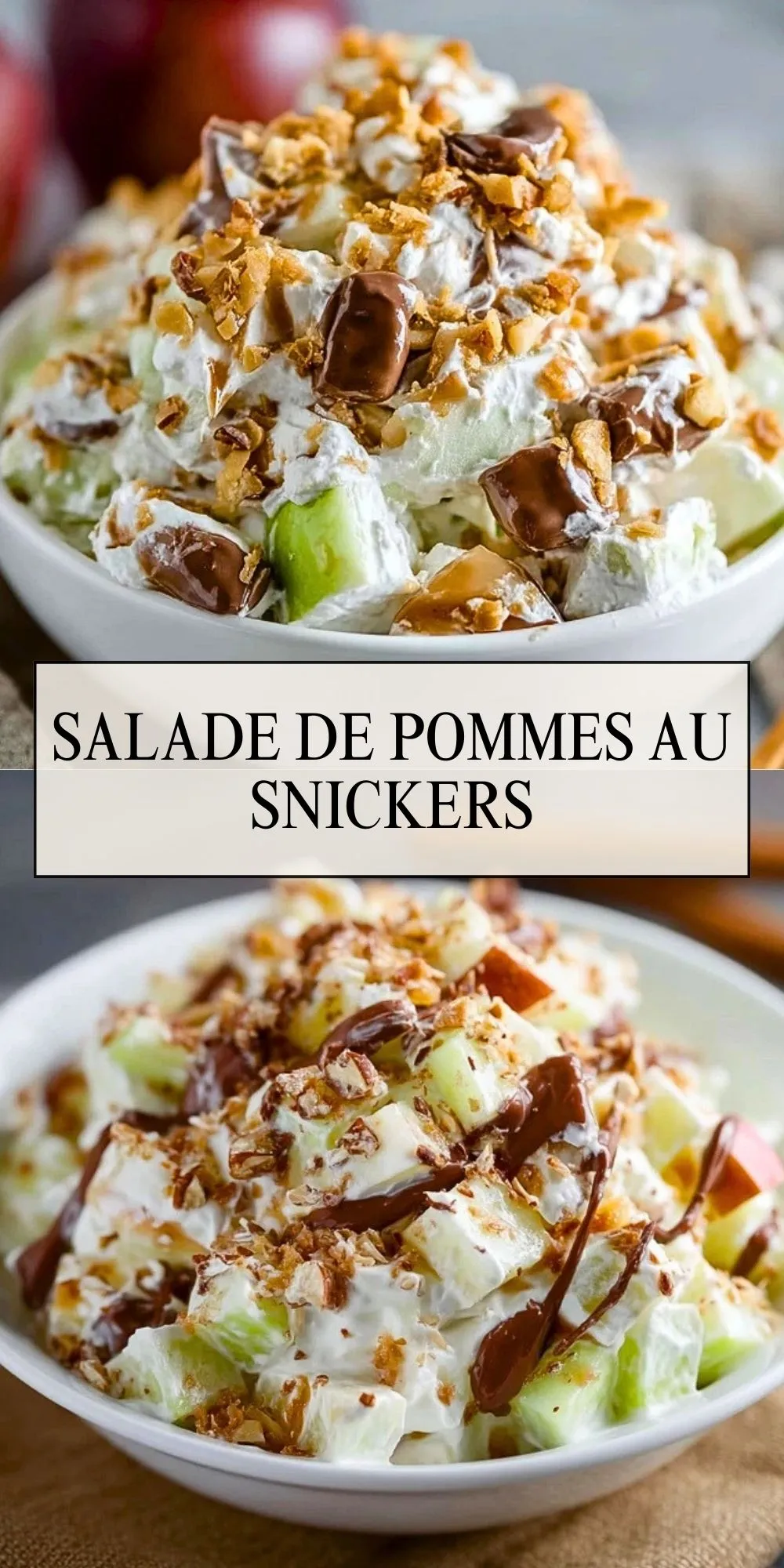Keywords: pommes, snickers, salade, dessert facile, sans cuisson