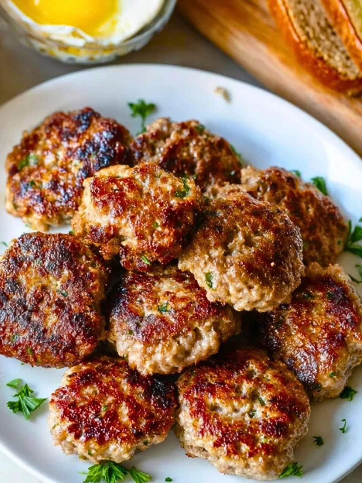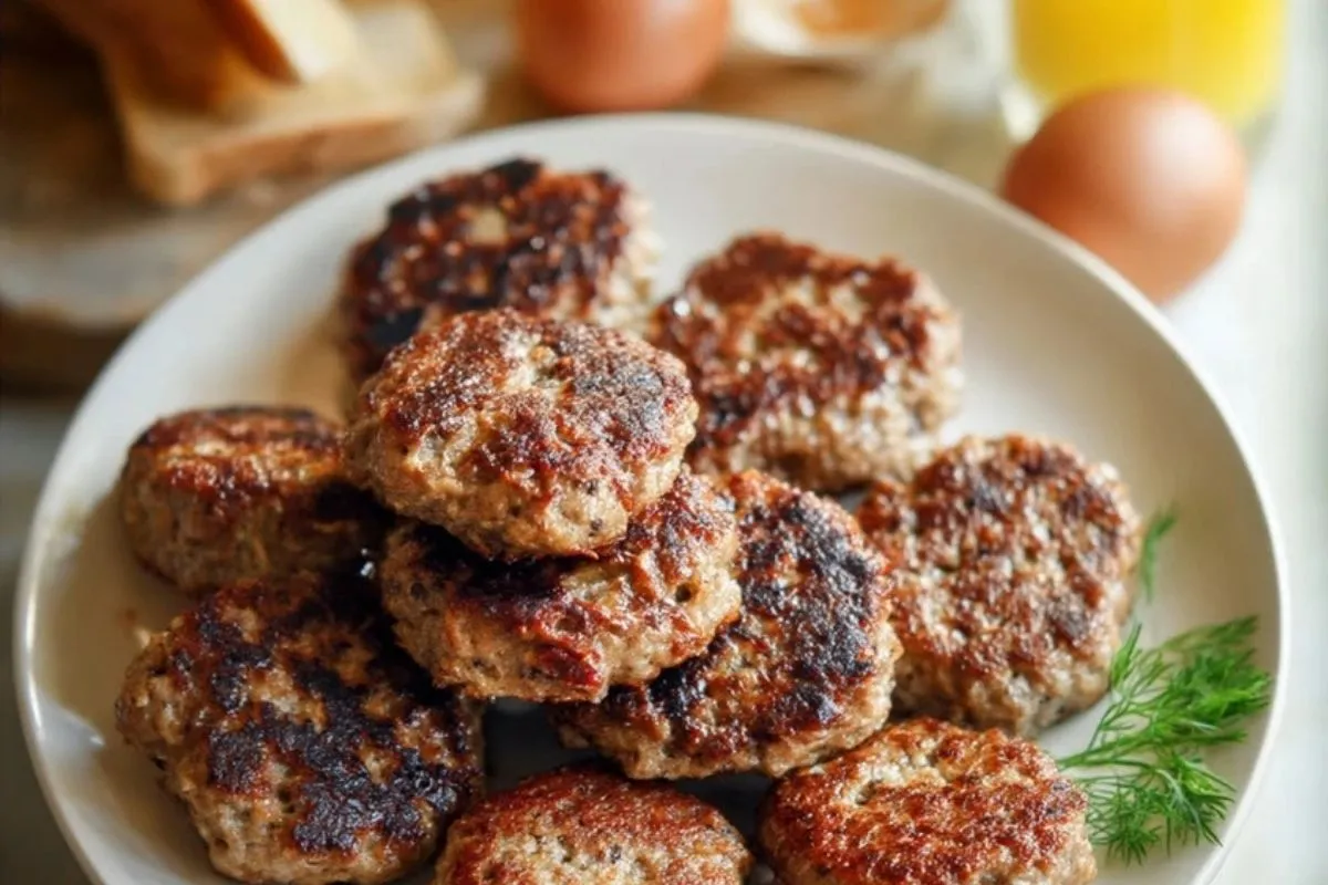 Ces saucisses de petit déjeuner maison sont de petites galettes de porc haché moelleuses, délicatement parfumées à la sauge et aux épices, dorées à la poêle jusqu’à être croustillantes à l’extérieur et juteuses à cœur, parfaites pour accompagner un brunch ou un simple œuf au plat.