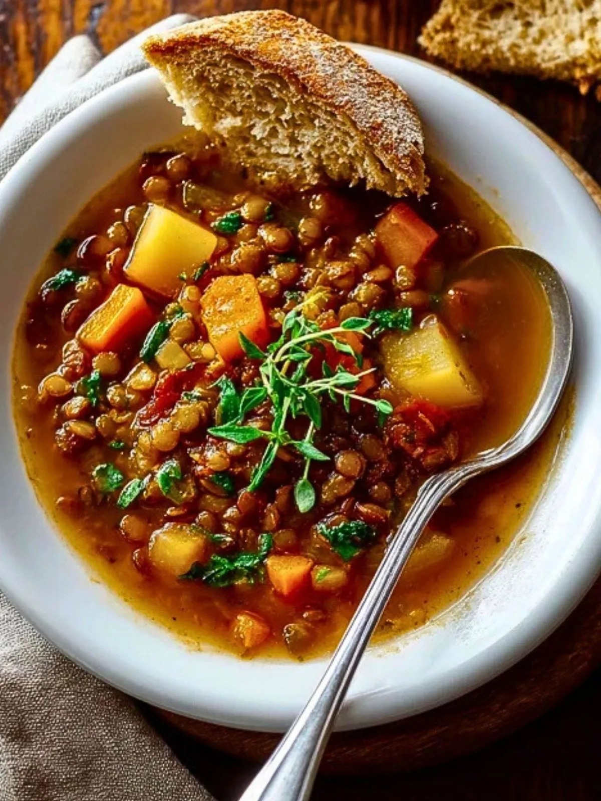 Keywords: soupe de lentilles, lentilles vertes, soupe maison, soupe rustique, soupe familiale