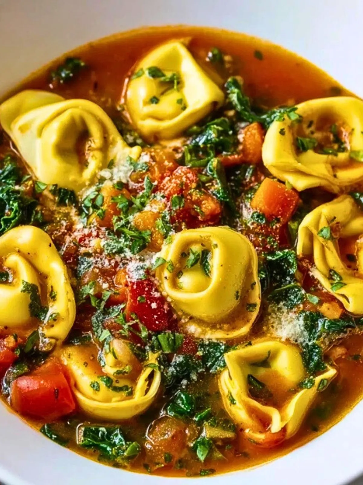 La soupe de tortellini végétarienne est un véritable hommage à la gourmandise et au réconfort. C’est une soupe généreuse, colorée, pleine de saveurs italiennes, idéale pour apporter chaleur et convivialité à votre table. Les tortellini, farcis au fromage, s’épanouissent dans un bouillon parfumé aux tomates, légumes et herbes fraîches, pour un résultat à la fois nourrissant et léger.