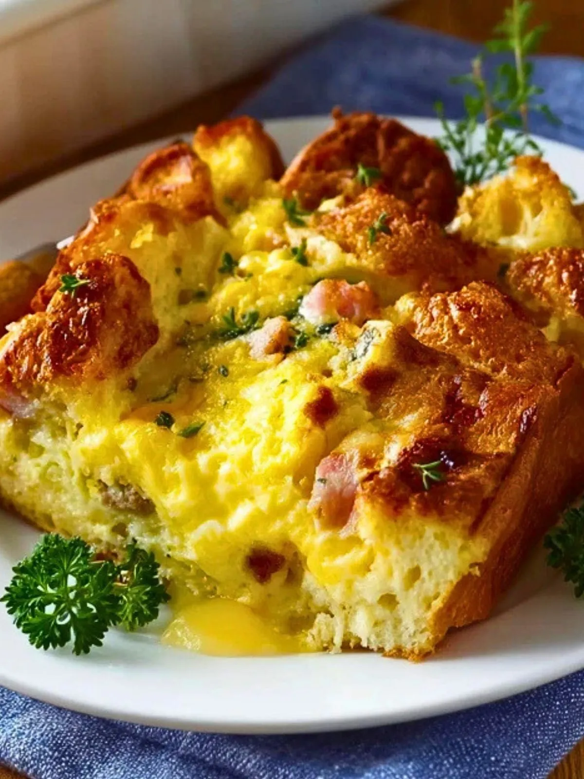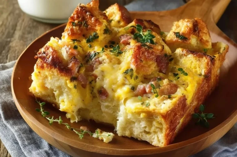 La strata maison aux œufs et fromage est un plat généreux, doré et moelleux, parfait pour les matins où l’on veut proposer quelque chose de chaleureux sans passer des heures en cuisine. Avec ses morceaux de pain imbibés d’un appareil aux œufs, son fromage fondant et ses touches salées irrésistibles, elle offre une texture à la fois croustillante sur le dessus et fondante à cœur.