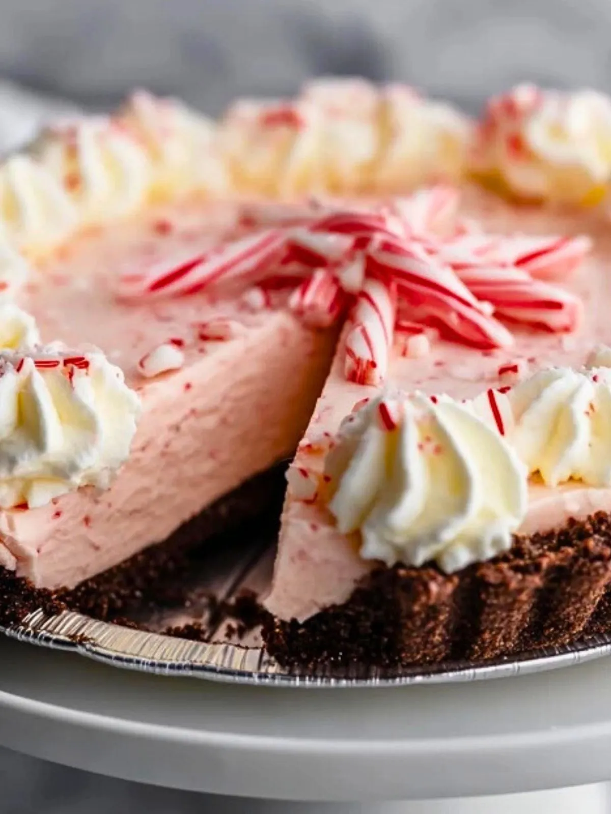 Juste avant de servir, décorez avec de la crème chantilly maison et des morceaux de cannes de bonbon pour une note festive. Servez bien frais.